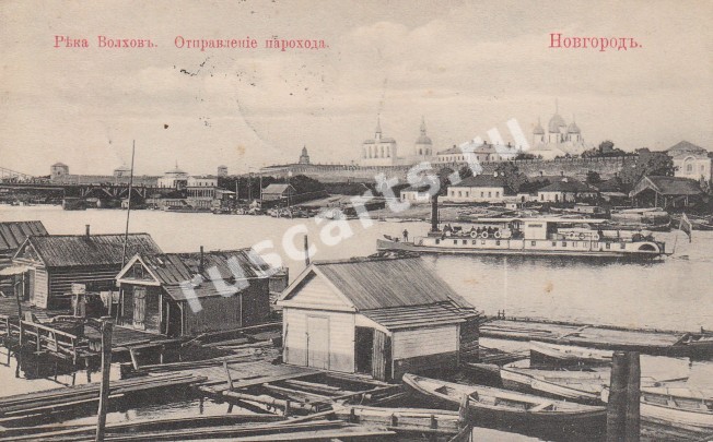 Новгород. Река Волхов. Отправление парохода.